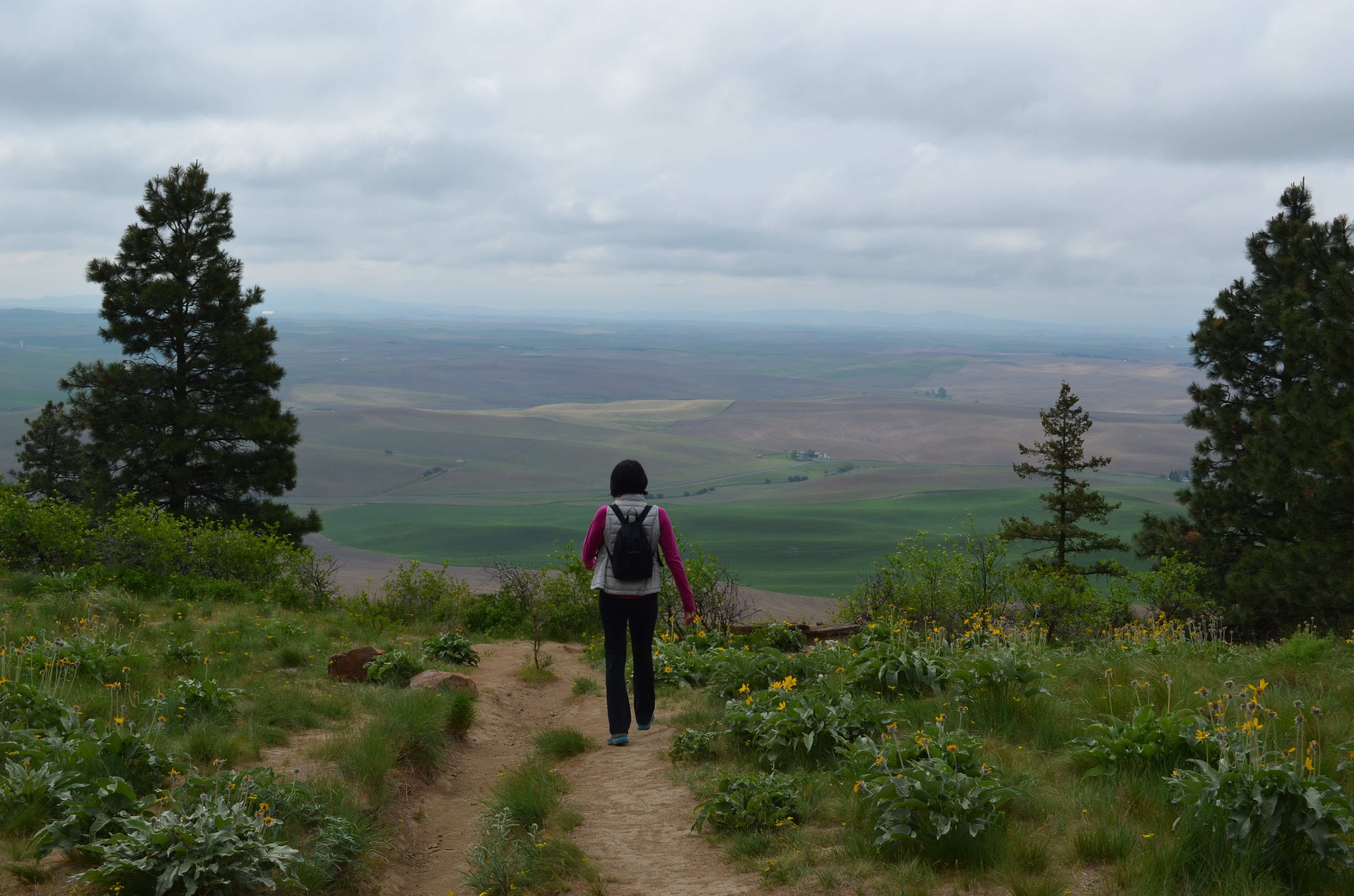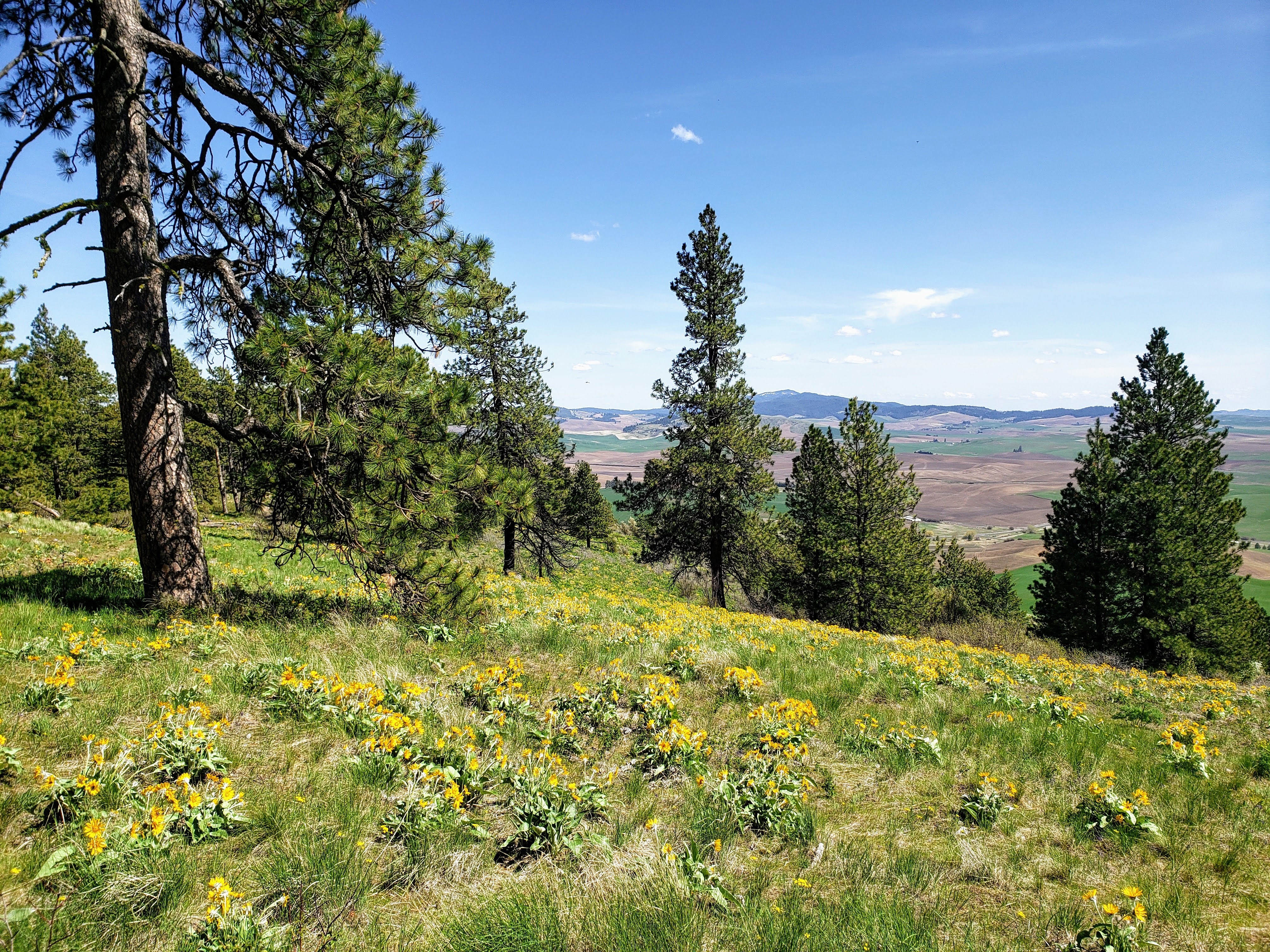 Kamiak Butte is the closest real hike to me, a three mile loop with a gorgeous view of the Palouse. Or five and a half miles if you take the longer route, but dogs aren’t allowed. The hike is especially beautiful when wildflowers are at their peak in the late April or Early May, and the top of the Butte is covered with Arrowleaf Balsamroot.